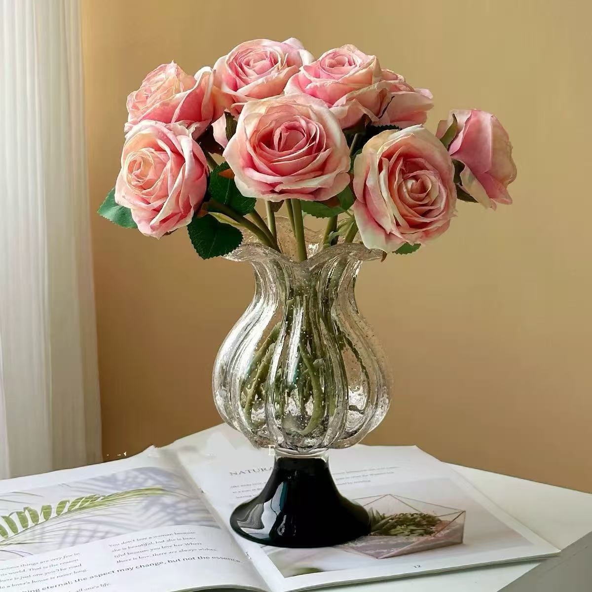 1. एक गिलास फूलदान, exuding बनावट र गुणस्तर।