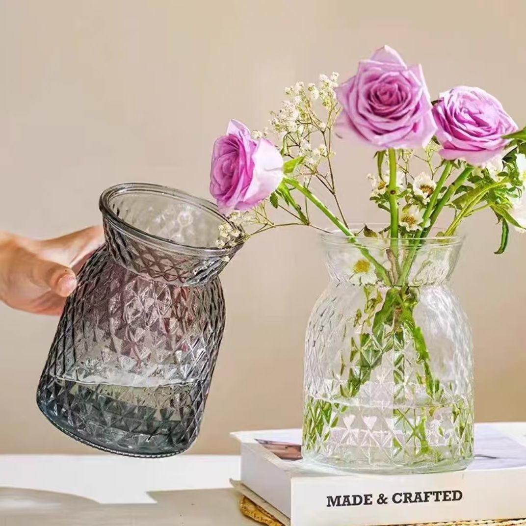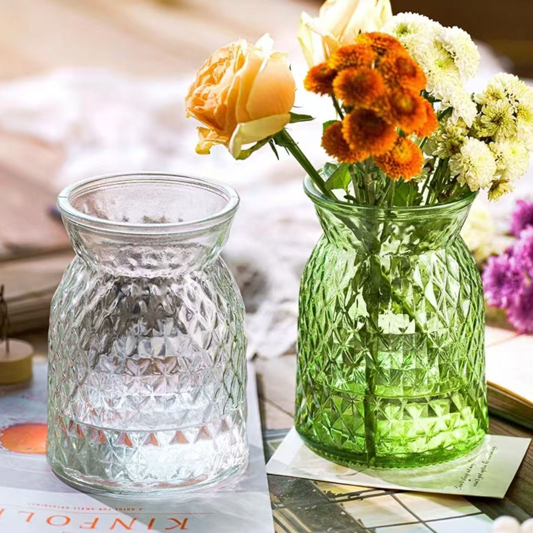 उत्पादनको नाम: लक्जरी पारदर्शी रेट्रो इम्बोस्ड ग्लास फूलदान